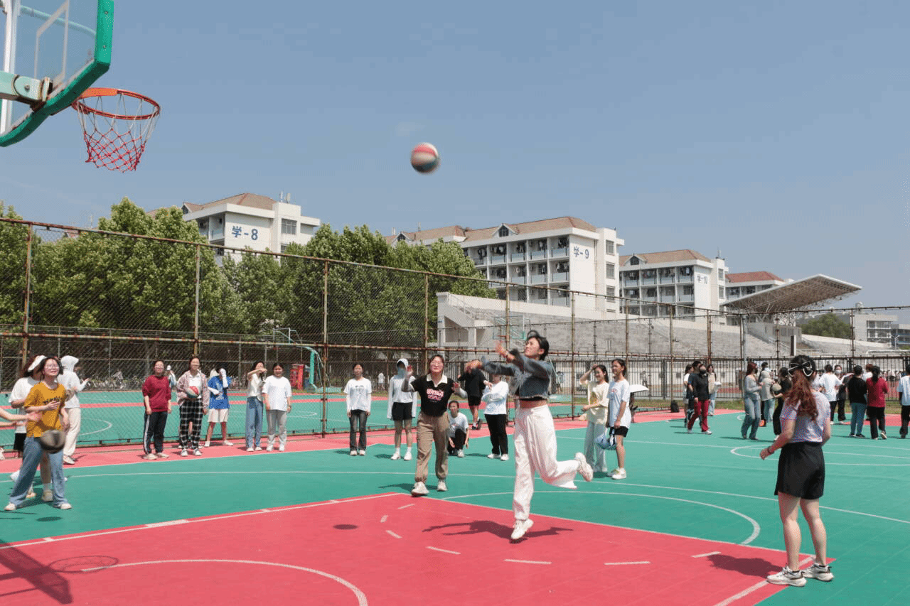 趣味运动会分为传呼啦圈、能量传输、夹乒乓球、接力投篮、小马过河接力五个项目。比赛当天,裁判与运动员们准时到场,绿意盎然的操场上,洋溢着青春的活力与激情。一支又一支的队伍向项目所在地出发,裁判们则耐心地向运动员们讲解规则、答疑解惑。比赛开始了!各个项目人员不断,能量传输的参赛人员们飞速奔跑去接球,夹乒乓球的参赛人员夹起乒乓球开始接力,投篮的选手一个接一个的投篮……欢声与笑语交织成快乐的海洋,活力与激情飞扬于热闹的赛场。