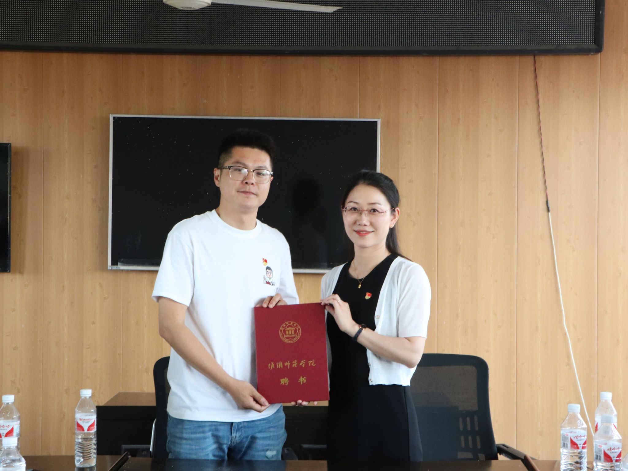 管婷婷为李浩颁发了必一运动就业指导教师的聘书。