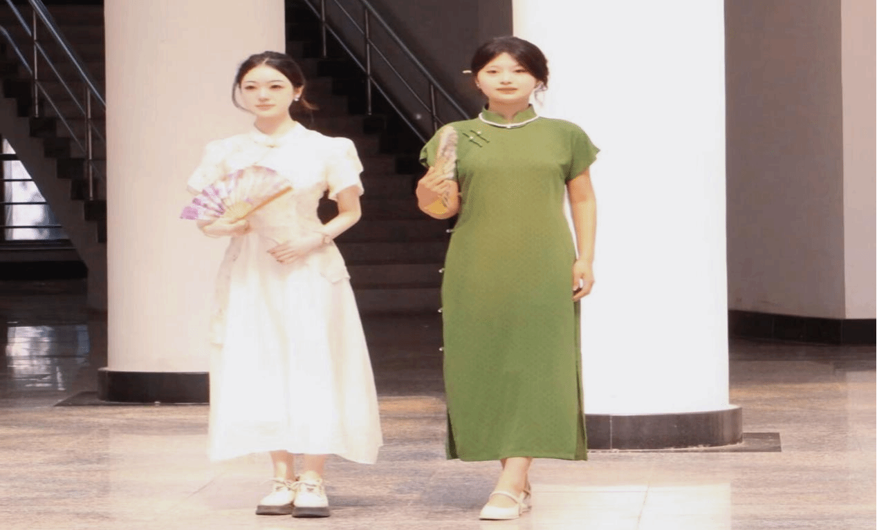 接下来就是本次活动精彩的走秀部分了,参加本次活动的同学分为个人组和多人走秀组,抽签后依次进行走秀展示,伴随着音乐的起伏,他们向大家展示了自信的步伐与迷人的风采,汉服、旗袍与礼服的精彩纷呈,是时代与创意的碰撞;精致的妆容与服饰的搭配,是个性与时尚的融合。