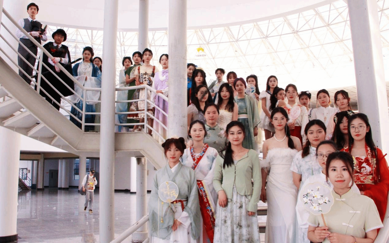最后,参与本次活动的同学们一起进行了大合照。走秀活动是传承文化和文化交融的重要平台,服饰作为文化的载体,承载着丰富的历史和文化内涵。通过走秀的形式,同学们可以目睹各类服装的精美与独特,感受到古今中外多种文化的魅力,推动文化的创新与发展。结合现代审美和时尚元素,使其更符合现代人的审美需求。