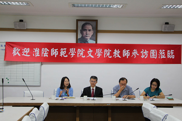 7月18日,5位老师与东吴大学中文系的钟正道主任及几位老师进行了教学座谈,双方就如何面对现代网络、手机等对高校课堂教学的冲击进行了研讨,互相深受启发。皇甫素飞教授从日常教学管理、在线开放课程建设、教学及考核方式改革、教师内涵提升等方面谈了看法。王毅主任认为课堂上要合理运用网络,使其在数据库检索、公文写作、编简报写等方面为我所用。葛志伟博士认为古代文学课堂网络可用于课后检索、查阅资料,以便学以致用,拓宽视野。刘桂兰和张慧主任谈了教学管理具体策略。钟主任认为课堂上老师是聚光灯、表演者,要有“攻击性”,给员工指令。台方其他老师还对翻转课堂、手机辅助教学的经验做了介绍。