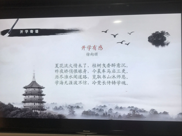 开学第一天,同学们迎着秋雨,早早来到教室,坐在位置上,静静的温习、看书,等待上课。任课教师也都提前来到教室,调试好多媒体等教学设备,做好上课前最后的准备。
