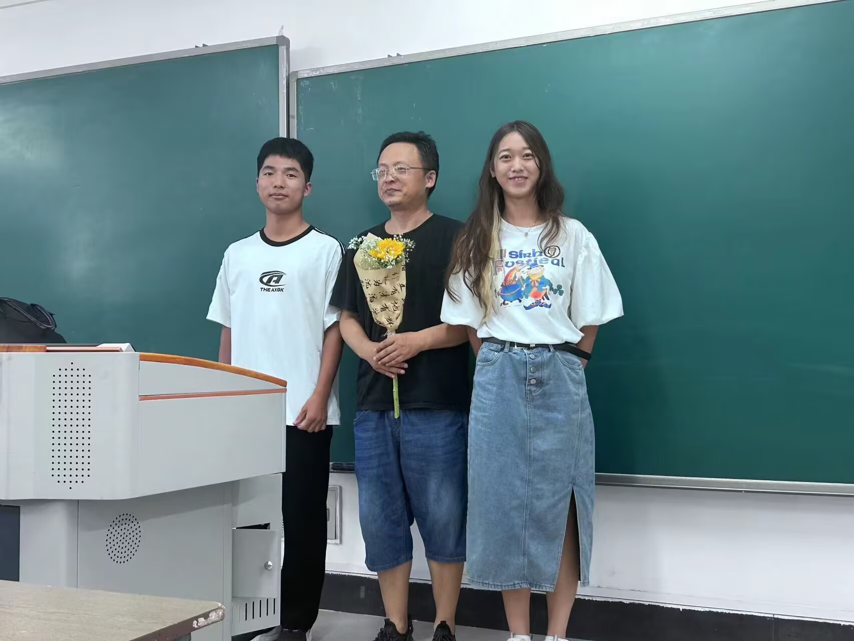 班级处,在讲台上的老师也收到了这份由全班同学策划的“惊喜”。明媚的阳光洒进教室,跳跃在鲜花花瓣之上。踏进教室的那一刻,老师们看着底下同学们快乐的笑脸,听着同学们诚挚的感谢与祝福,脸上也露出了欣慰的笑容。在照片中,同学们将老师围在中间,气氛一片欢乐。