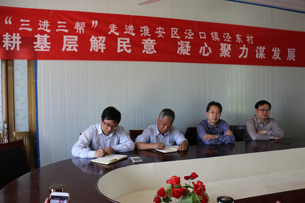 5月10日下午,必一运动副董事长施军、公司党委书记时名早、继续教育公司党委书记韦相和一行来到挂钩联系农村——淮安区泾口镇泾东村开展“三进三帮”活动。泾东村总支书记杨建美先后介绍了泾口镇泾东村的经济发展、社会建设等情况。