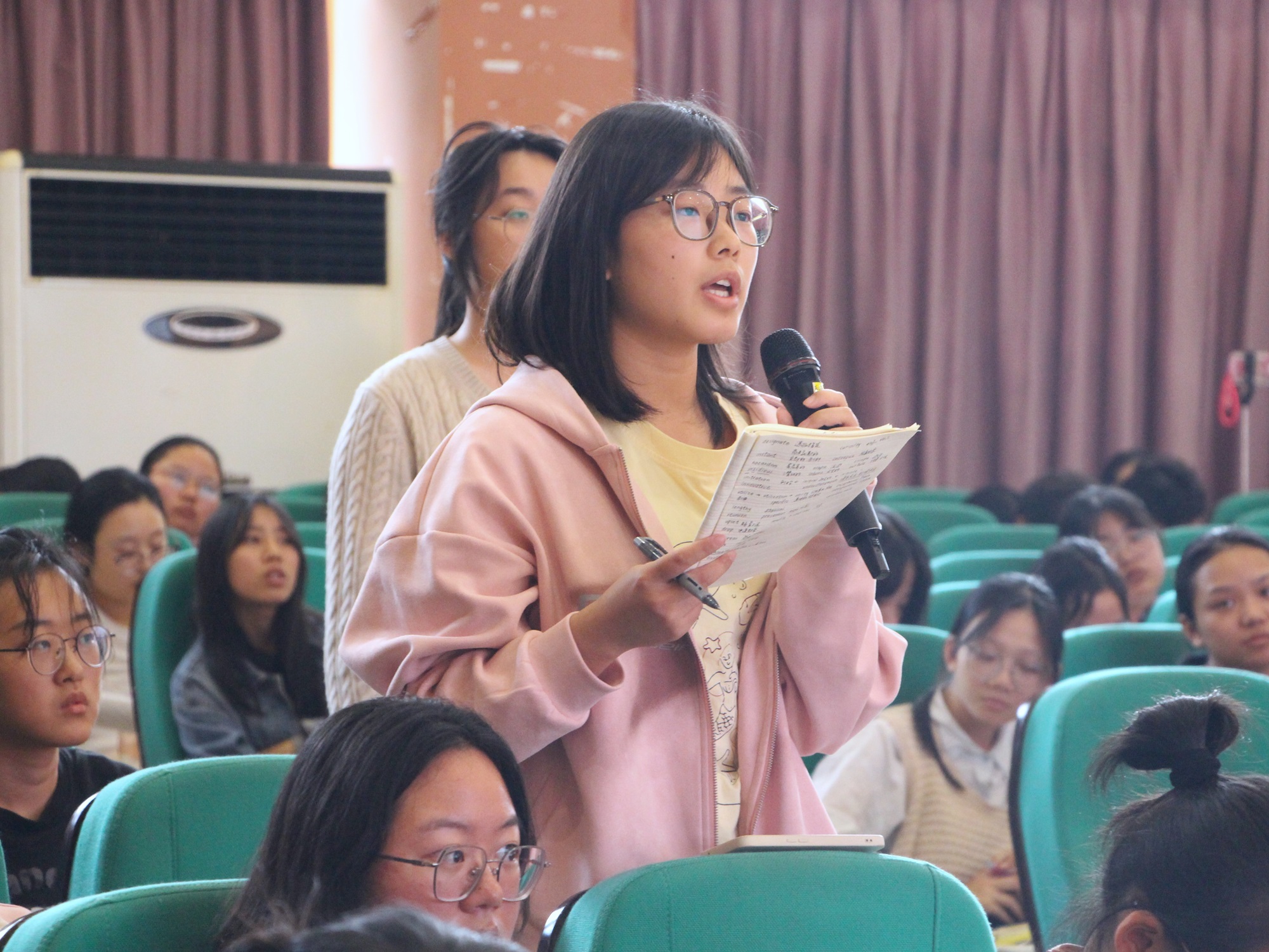 讲座最后,莫砺锋在旁征博引的同时,结合自己当年知青下乡的经历,讲述自己躺在无顶茅屋里,听见杜甫《茅屋为秋风所破歌》时的感动,呼吁同学们阅读经典古籍,从阅读中汲取人生观、价值观的启发,获得充沛的精神力量。同时,他殷切期望同学们日后成为经典文化的传播者,弘扬中华优秀传统文化。
