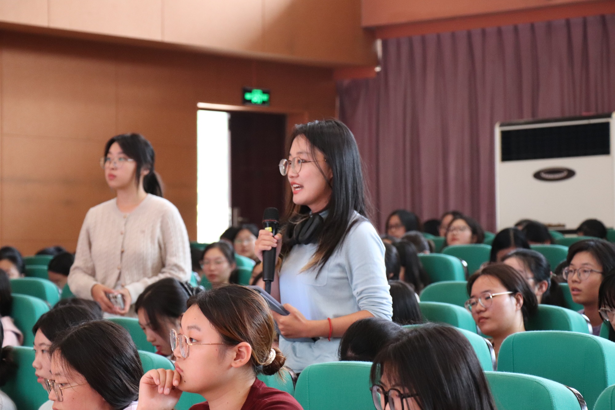 在交流互动环节,同学们踊跃提问。针对当代青年精神上的迷茫有何建议的问题,莫砺锋结合当今年轻人“躺平/焦虑”的现象,以苏东坡爬山中途休息的事作例,建议年轻人在奋斗过程中可以躺下休息,但不要一躺不起。