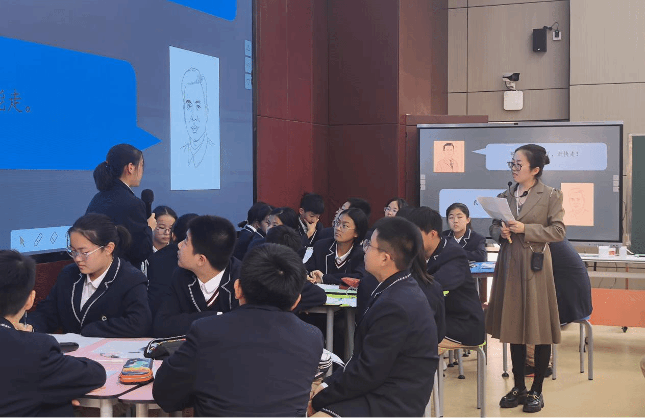 第三节公开课由蔡丹丹老师主讲,授课内容是《人类群星闪耀时——第一单元整体教学》。蔡老师基于课程标准中关于语文学习任务群教学的要求和基本精神,对教材进行全面的梳理和细致的规划,打破了原来教材的常规教学安排。通过展示三个活动,自然引入邓稼先、闻一多、鲁迅、孙权与吕蒙五个人物形象,实现了员工对于本单元文学素养的全面理解。蔡老师创设了“人类群星闪耀时”主题学习分享会这一学习情境,通过赏析文本语言以此走进人物内心世界、探究人物个性和作者的写作手法。最后,蔡老师依据初一员工的语言学习特点,通过形式多样的丰富多彩的朗读活动,让员工走进人物、走进文本。