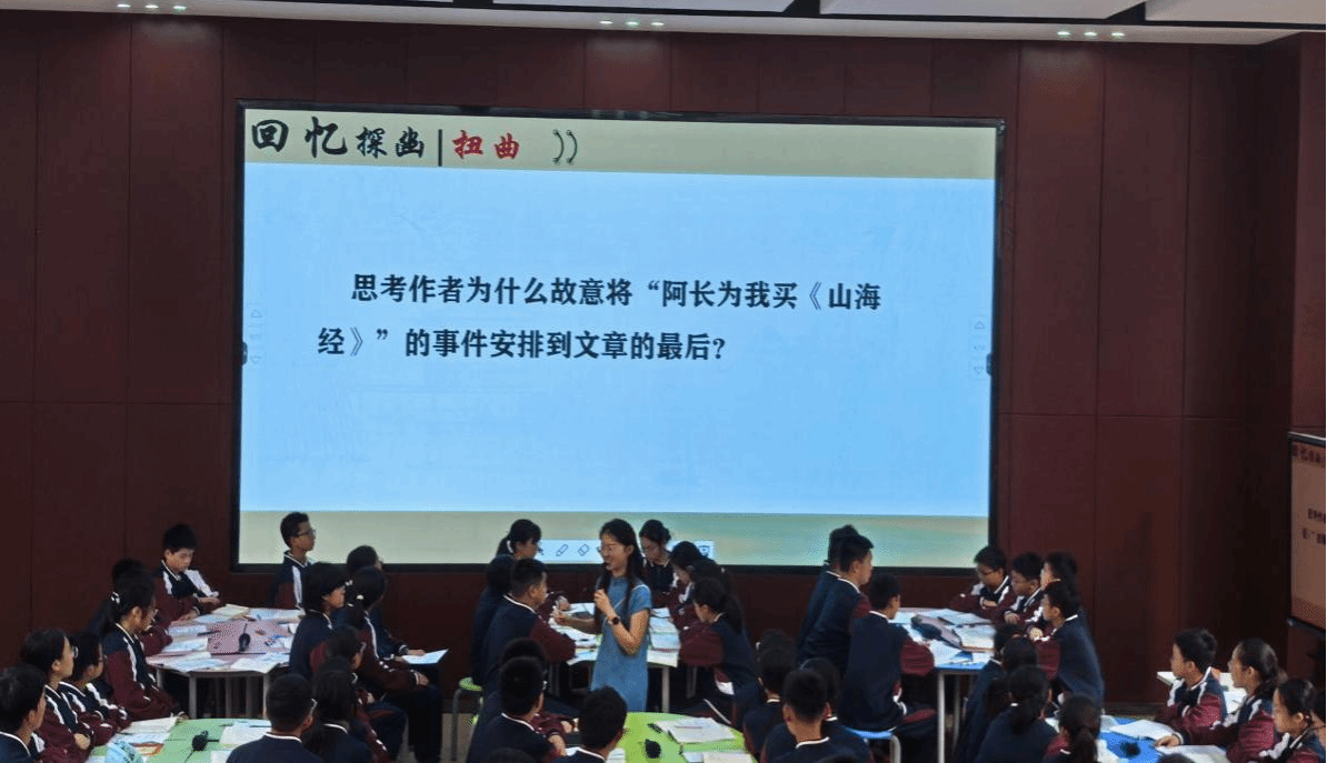 第一节公开课由赵兰婷老师主讲,授课内容是《阿长与<山海经>》。赵老师围绕思辨性阅读与表达任务群开展教学,分为对课文的扭曲、强化、削弱、重新评价四个环节。种类丰富的活动是本节课的最大亮点。首先,对文章重点语句进行了重音朗读设计。其次,创设情景短剧,员工演绎阿长买《山海经》的情景。最后,赵老师用鲁迅对童年的评价加深员工对于《朝花夕拾》的深度阅读与理解。赵兰婷老师以再构回忆的角度切入文本,将对比阅读的方法贯穿整个教学过程,指导员工从单篇走向整本书阅读,切实提高了员工的语文素养和综合能力。