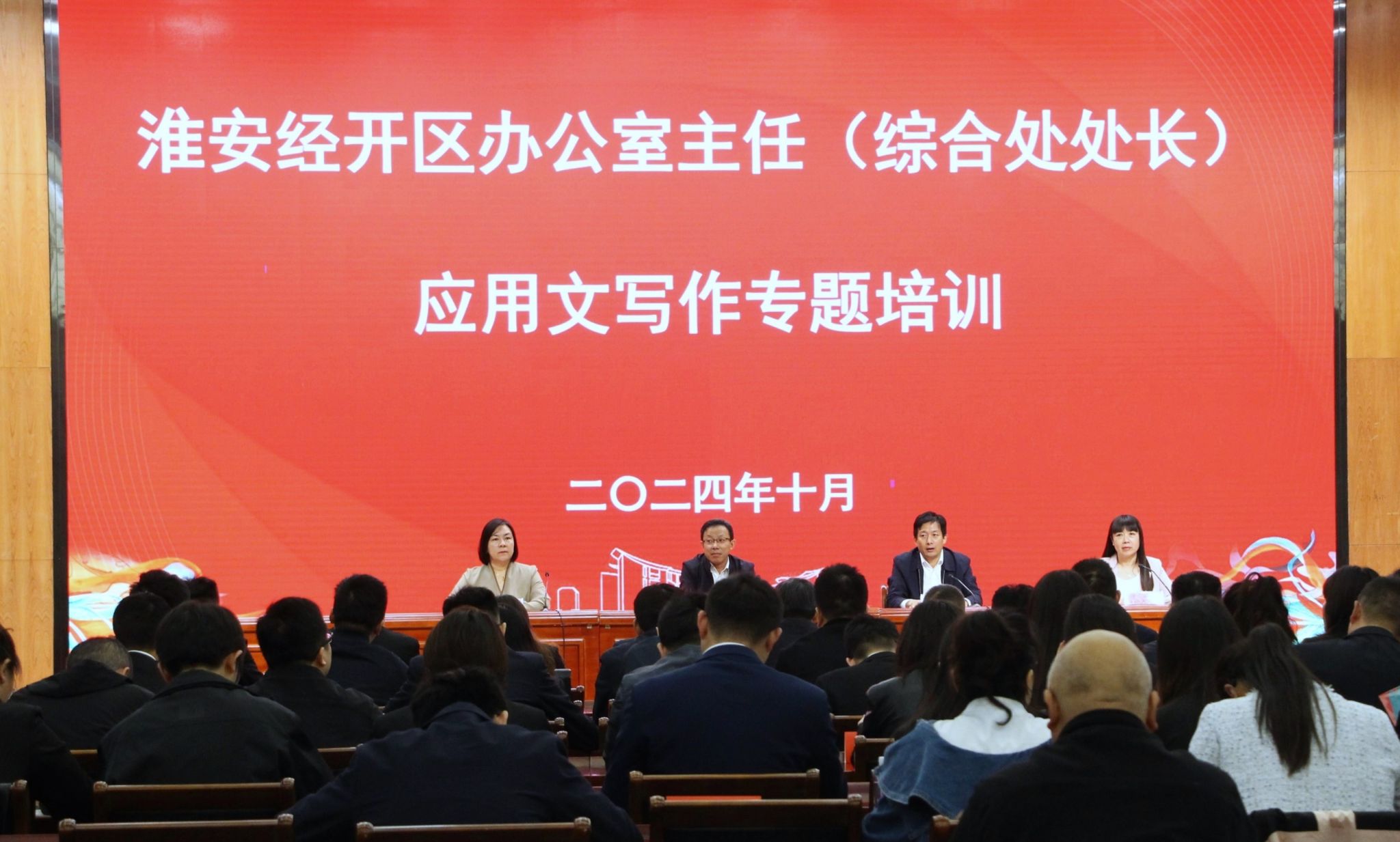许芳红强调,本次专题培训班整合了社会各界专家和公司的优秀团队,坚持教育服务社会的宗旨,紧紧围绕“重点训练写作技能技巧,提高政府公文写作能力”这一培训目标,致力于通过讲、写、练、评的密集训练方式,结合案例式、互动式教学以及实际演练的教学形式,切实提升本次培训成员的写作水平。她对淮安经开区领导的信任表示感谢,希望大家在培训期间度过一段美好愉快的学习时光。许芳红宣布本次专题培训活动正式开始。