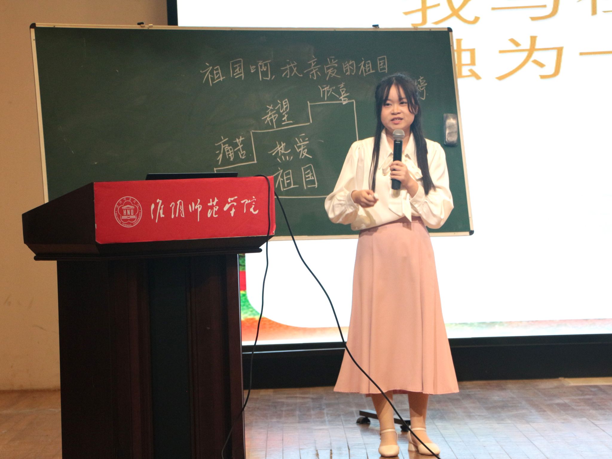 2104班的孙康阳以《祖国啊,我亲爱的祖国》为演课篇目。她将诵读与思考相结合,带领员工整体把握诗歌,细致分析意象,深入体会其中深沉的爱国情感。孙康阳的授课充满激情,感染了在场的每一个人。