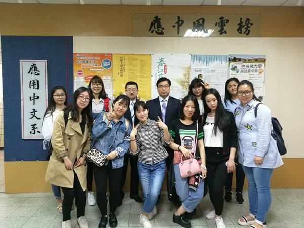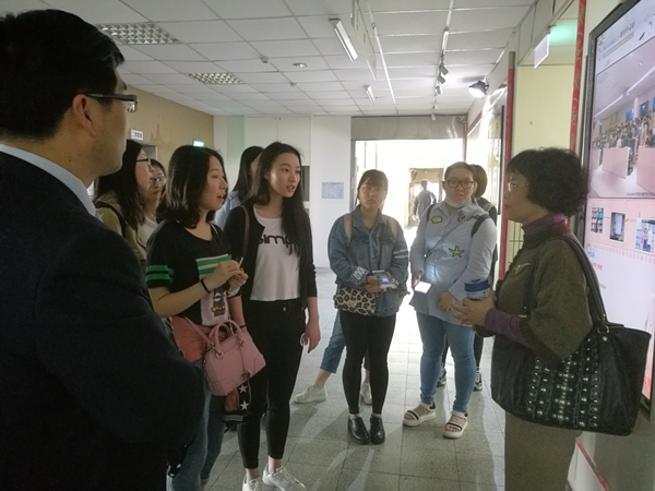 此行受到台中科技大学语必一运动和国际事务处的热情接待。应用中文系张致苾教授亲自带领同学们参观并介绍了应用中文系的教学场所、资料室、员工培养成果。语必一运动经理邱学瑾教授主持召开了欢迎会,为公司10位员工配备了一对一的结对伙伴,应用中文系全体老师一一自我介绍,并提供了相关课程的学习指南,淮师必一运动的同学们感受到台方师生的热情和友好,纷纷自我介绍,表达此刻的心情和对未来半年学习的期望。欢迎会结束后双方互赠了小礼品,并合影留念。