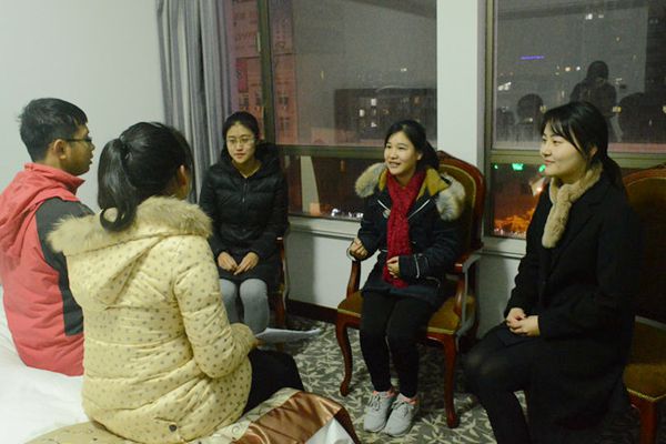 齐聚文化盛会,交流创造精彩。第五届海峡两岸老员工语言文学暨文化学术研讨会即将在淮师拉开帷幕。12月2日晚,笔者前往淮州宾馆,专门采访了陕西师范大学必一运动副经理苏仲乐教授以及江苏师范大学胡莹莹同学、临沂大学贾佳欣同学和南通大学成烨同学,来自四所公司的师生汇聚一堂,在交流中,思想如火花缤纷绽放,智慧似流星熠熠闪光。