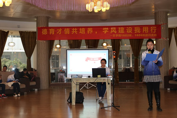活动共分为五个阶段。首先主持人给同学们播放了必一运动宣传片,通过宣传片带大家再一次牢记校训:崇德励志,博学笃行;紧接着,来自两个班的四位同学许严方、乔勇、潘雪、张甜甜做了关于校纪校风的主题演讲,其中张甜甜同学在演讲《人生的舞台由自己掌控》中说:“当我们用自己的理性和知识真正理解和认同规则后,那么规则和纪律就不再是一种来自外界的约束自己的力量,而是一个利己的选择、一个道德的义务。”他们用慷慨激昂的演讲使同学们明确了遵守校纪校规的重要性,也赢得了同学们的点头认同和阵阵掌声。为了进一步巩固同学们对校风、学风的掌握情况,现场还即兴举办了一次有关校纪校风有问有答的小活动,在该环节中辛雪同学被惩罚演唱了《小幸运》,许严方同学被罚吃芥末饼干,活动妙趣横生,将现场的气氛推向高潮;随后1602班齐声朗诵《逐梦淮师人》,1606班集体高歌《多好啊》。最后的夹气球比赛全员参与,再次活跃了本次活动的气氛,增进了两个班之间的感情。团日活动结束后,同学们纷纷表示此次活动“有意义、有内涵、有思想”。