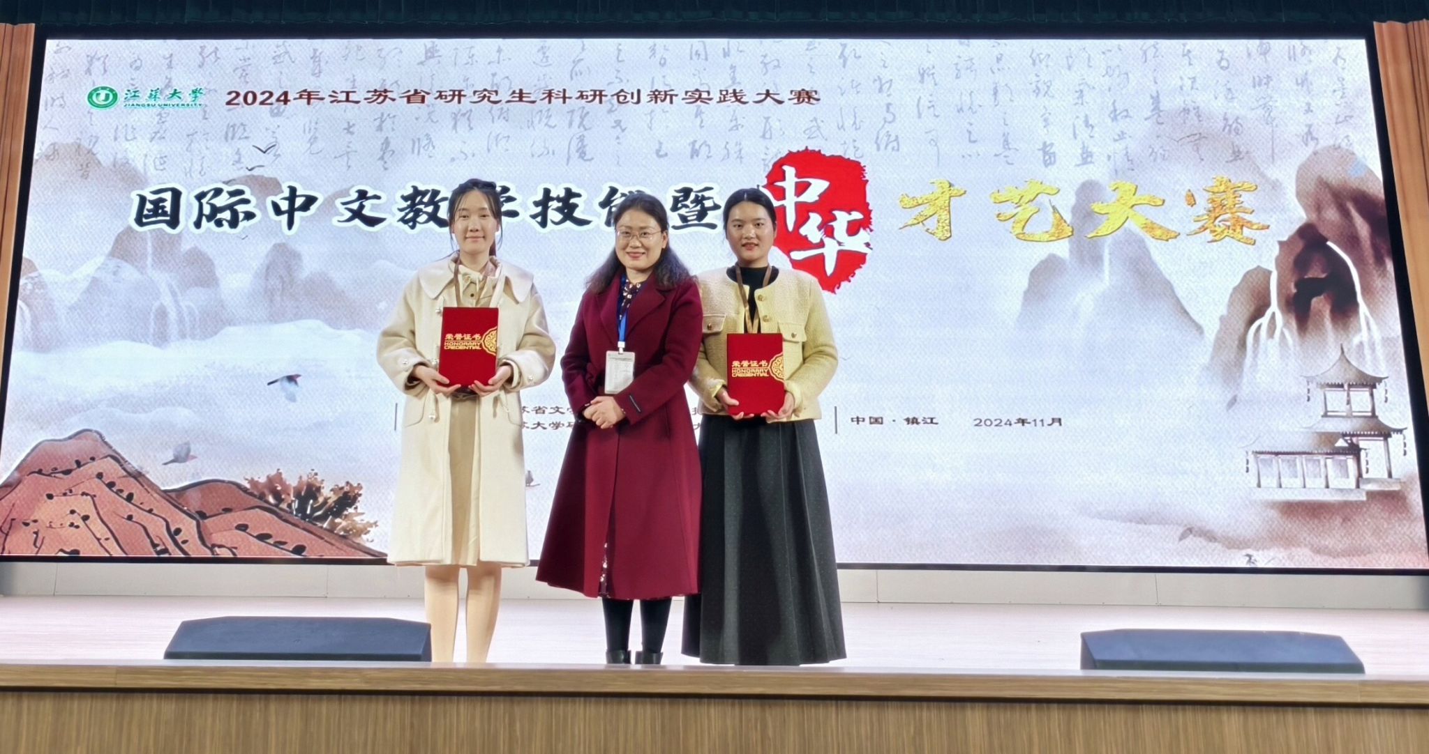 11月23-24日,由江苏省文学类研究生教育指导委员会主办、江苏大学研究生院与江苏大学必一运动共同承办的2024年江苏省研究生科研创新实践大赛——国际中文教学技能暨中华才艺大赛在江苏大学顺利举行。经过激烈角逐,2023级研究生陆从容和马悦表现优异,分别荣获国际中文教学技能大赛一等奖和二等奖。
