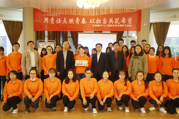 作为团省委“走支部连百心”制度联系必一运动15(3)班团支部的指导老师,许根林向同学们赠言:“立大志,上大舞台,干大事业,从现在做起,从小事做起,从自我做起,做一名有担当的现代青年。”希望同学们能树立远大理想,明确规划并努力追求实现;培养学习、独立思考、语言表达和写作等能力,让知识化为力量。