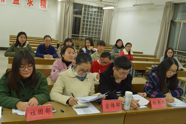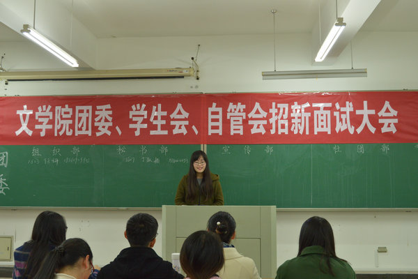 虽然今年的招新大会相较于往年在时间上推迟了一些,但16级同学加入员工组织的热情却丝毫没有减退。在大会之前,团委副书记邬金玲首先简单介绍了本次大会的流程以及注意事项。在招新过程中,各部部长根据自身工作性质和工作重点考察了同学各方面的能力。面对各部门负责人的进一步提问,同学们表现得从容不迫,自信大方,不仅提出了自己对意愿部门的看法,还对自己未来的大学四年生活提出了明确的要求。经过考核,各部门都招揽到了所需的人才,招新工作在紧锣密鼓中圆满结束。