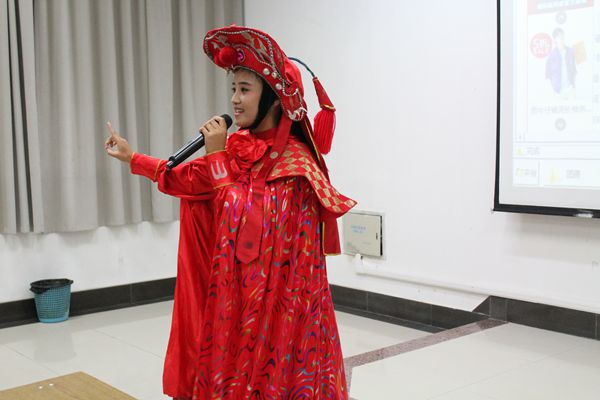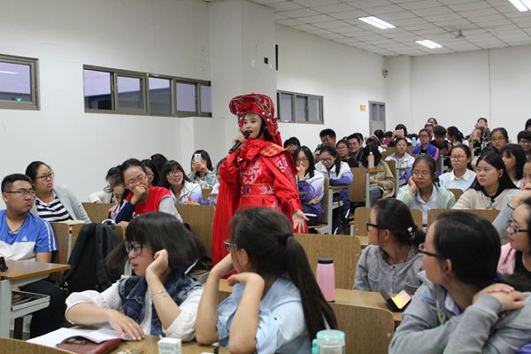 最后,庄超特邀1606班董玉莹,为同学们带来了一首富有现代风韵的戏曲《说唱脸谱》。现场,董玉莹一身戏服,唱念结合,为同学们献上一场京味十足的传统戏剧表演,获得了同学们的阵阵掌声。