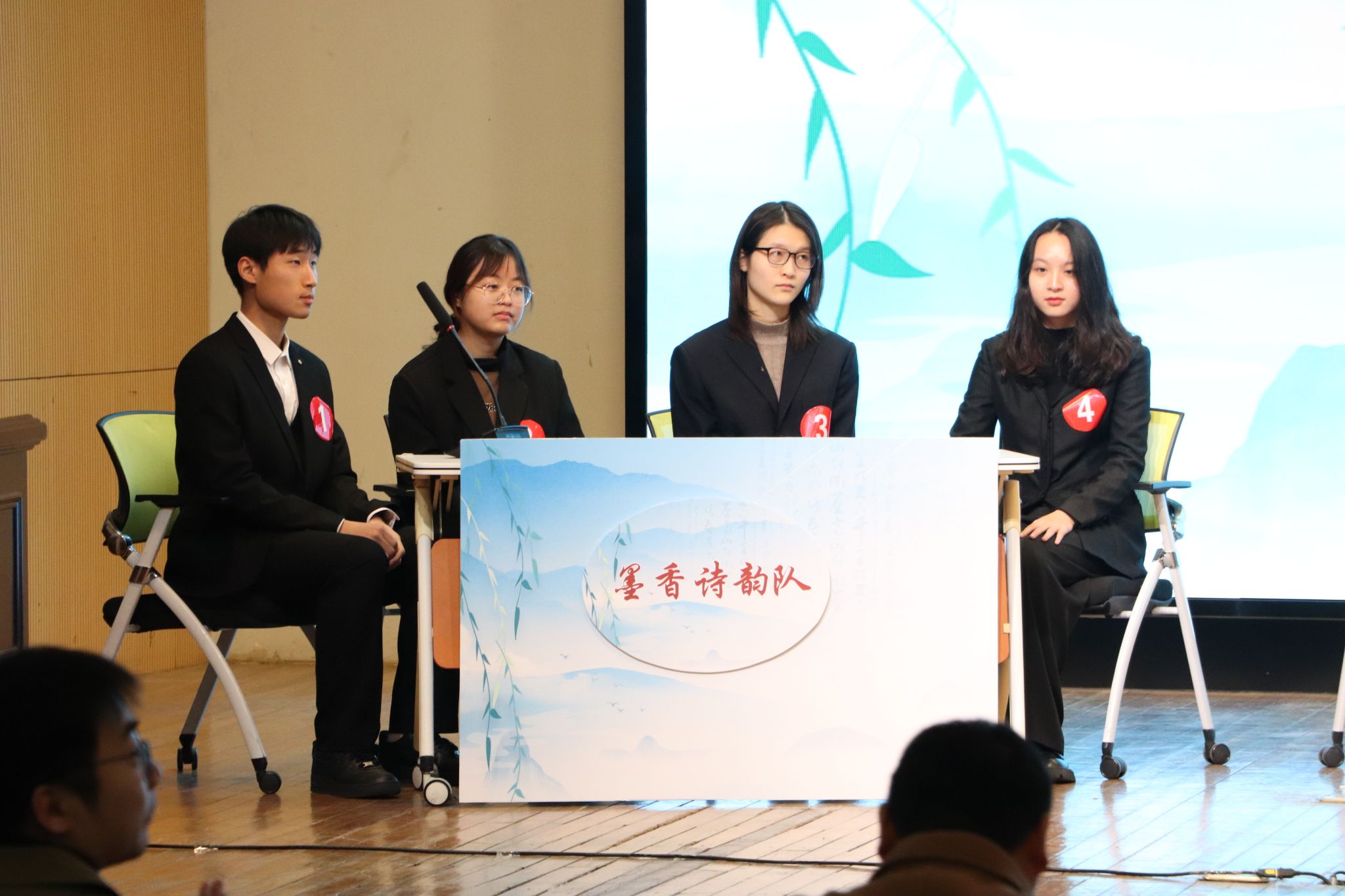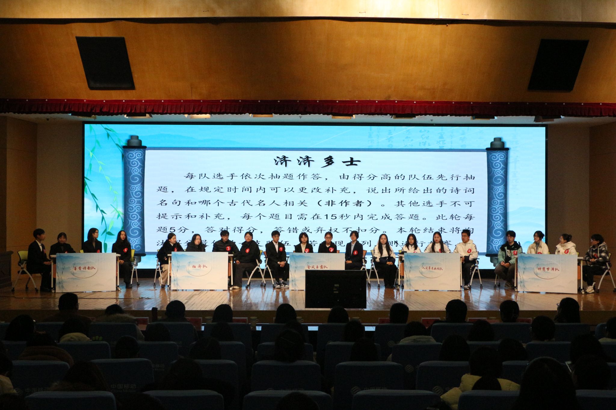 本次决赛共设置“点字成诗”“济济多士”“争先恐后”“搜罗万象”和“九转丹成”五个环节。点墨飞毫成雅韵,字字珠玑映诗心;济济多士聚一堂,才华横溢展诗章;争先恐后展才情,诗词竞技显锋芒;搜罗万象入诗篇,博古通今展才情。在比赛过程中,每个队伍轮流竞答,团队内部齐心协力,一度将比赛推向高潮。