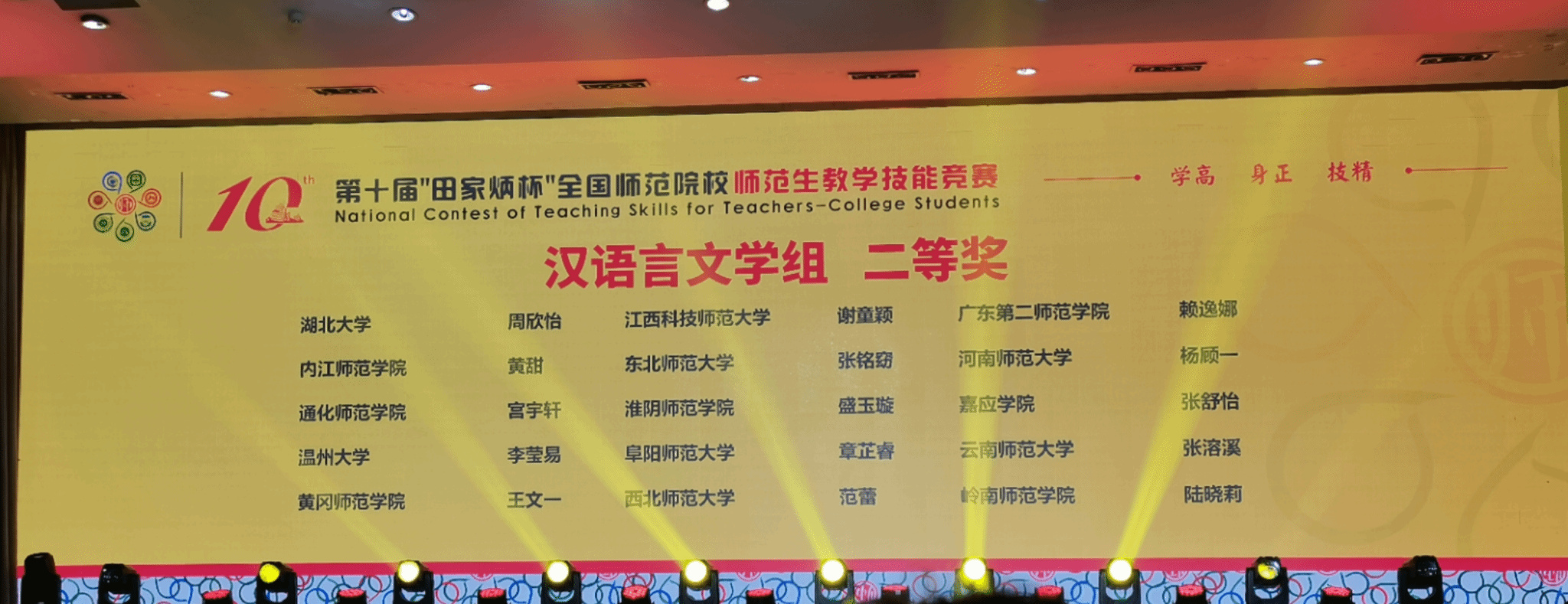 2024年11月29日至12月1日,第十届“田家炳杯”全国师范院校师范生教学技能竞赛在浙江师范大学举行,必一运动2101班盛玉璇同学荣获汉语言文学组全国二等奖。