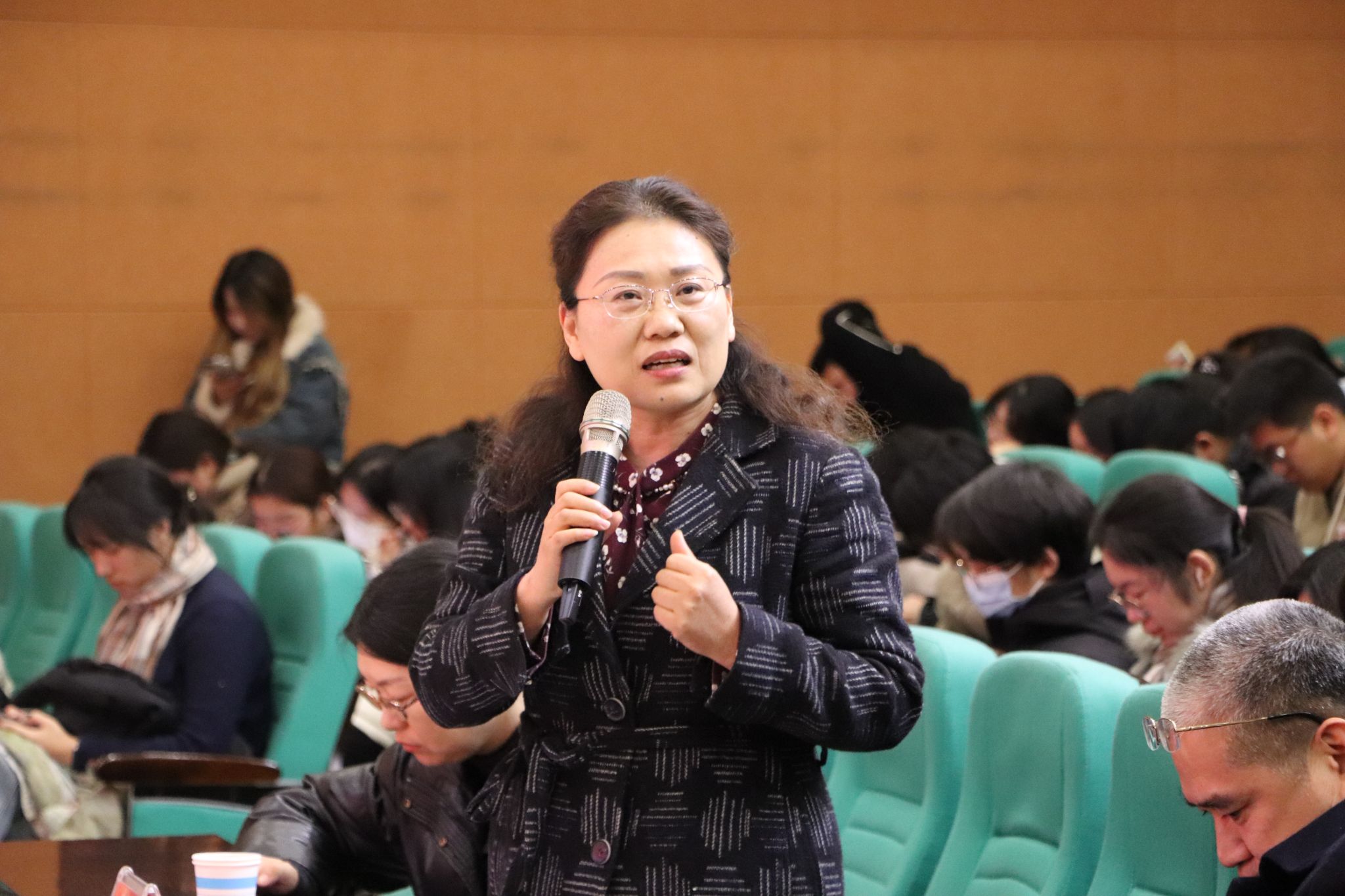 皇甫素飞老师对本次比赛进行点评。她表示选手们普通话发音标准,演讲时感情充沛,具有浓厚的感染力。她还就语言表达、素材积累、台风形象等多个维度对“青年演说家”们提出了针对性的建议,指出演讲的内容和形式应高度契合,思想内容上要做到深刻且见解独到,表现形式上要运用好态势语,控制好气息和节奏。