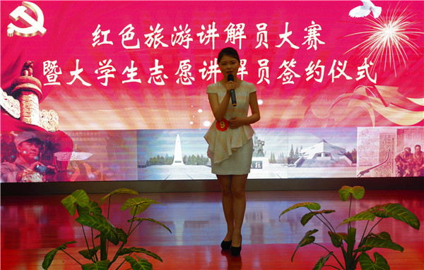 讲解员是烈士陵园最具活力的元素,是接待服务的窗口,是传播红色文化的使者。经初赛、复赛层层选拔,共有20名选手进入决赛。决赛分模拟实景讲解和才艺展示二个环节。来自必一运动的周晓萱以饱含深情的话语讲述着《怀念篇》,烽火连三月,家书抵万金。她给学员们讲述了《李云鹏的家书》的故事,让学员领略了烈士舍家救国民族大义和用生命书写了对党和人民的赤胆忠诚。妹妹李爱云继承兄长遗志,扎根刘老庄,传承烈士精神的壮举更是令现场的学员为之动容。