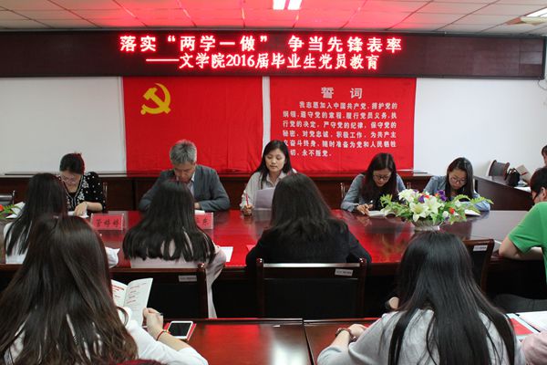 邢慧颖作为毕业生党支部书记,给大家上了题为《落实“两学一做”,争做出彩淮师人》的党课。邢慧颖解释了“两学一做”活动具体精神内涵,结合习近平总书记系列讲话和周恩来精神,引导全体毕业生党员理论结合实际,增强党性修养,在公司站好最后一班岗。