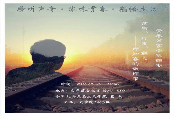 “你的青春,身体和灵魂必须有一个在路上。”葛采用励志的旅行故事分享了他的成长,感动了处在迷茫中的同学。一场关于旅行和梦想的分享会虽然落下帷幕,但是“在路上”的精神却将伴随每个人的一生。
