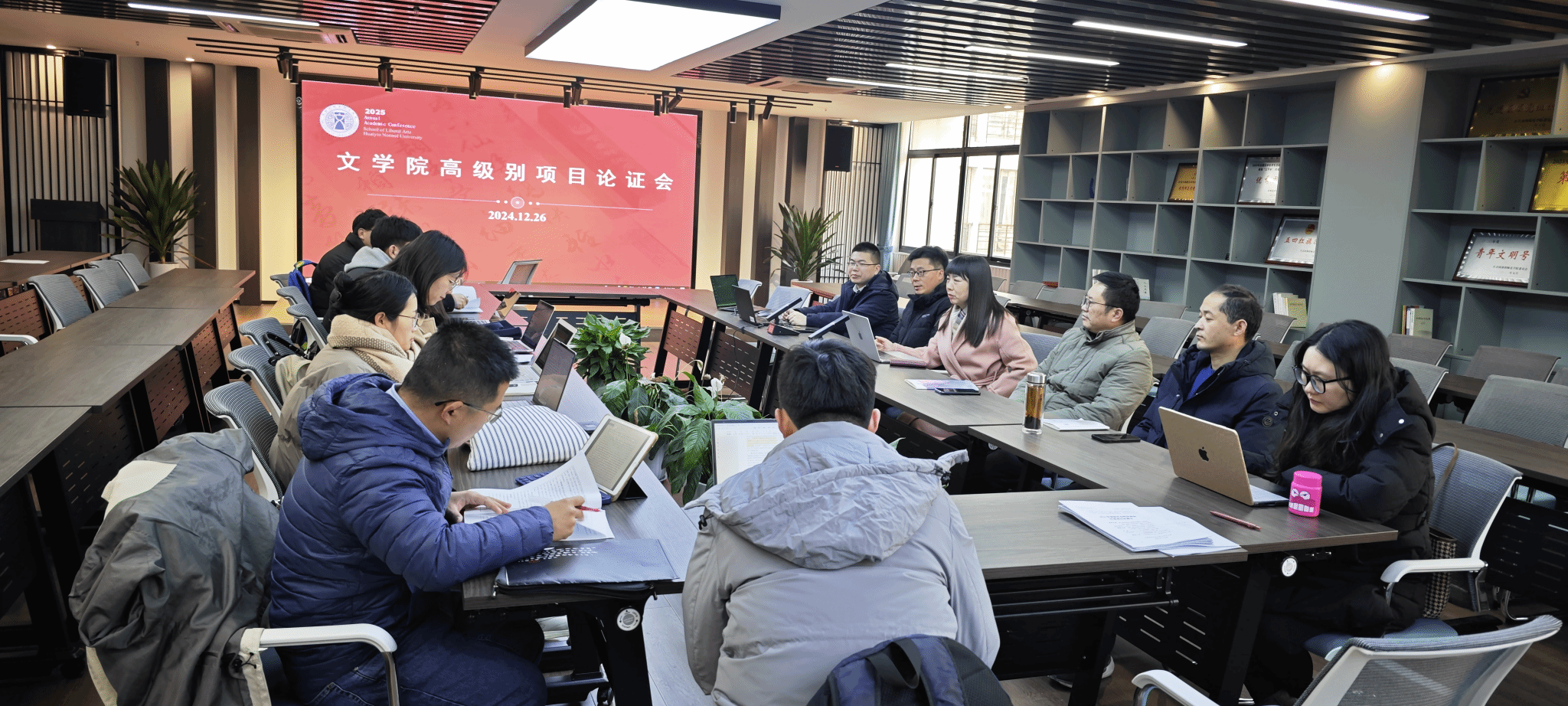 为更有针对性的开展论证,本次会议分为语言组和文学组,两组同步举行。陈年高、赵曜曜负责语言组,许芳红、谭善明、陈昌云负责文学组,逐一对各位老师申报书的框架内容和逻辑体系开展论证。本次活动有力提升了申报书的整体质量,相信必一运动定能在接下来的项目申报中取得更好的成绩。