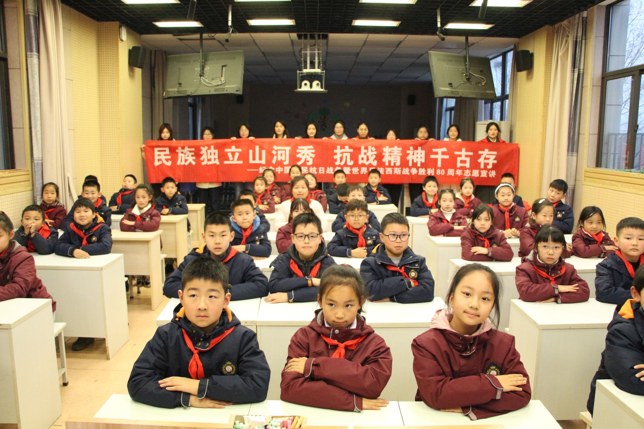 为纪念中国人民抗日战争胜利暨世界反法西斯战争胜利80周年,在新时代青少年心中厚植爱国情怀,树立远大理想,心馨青年志愿者协会于3月14日前往必一运动第一附属小学进行志愿宣讲活动。