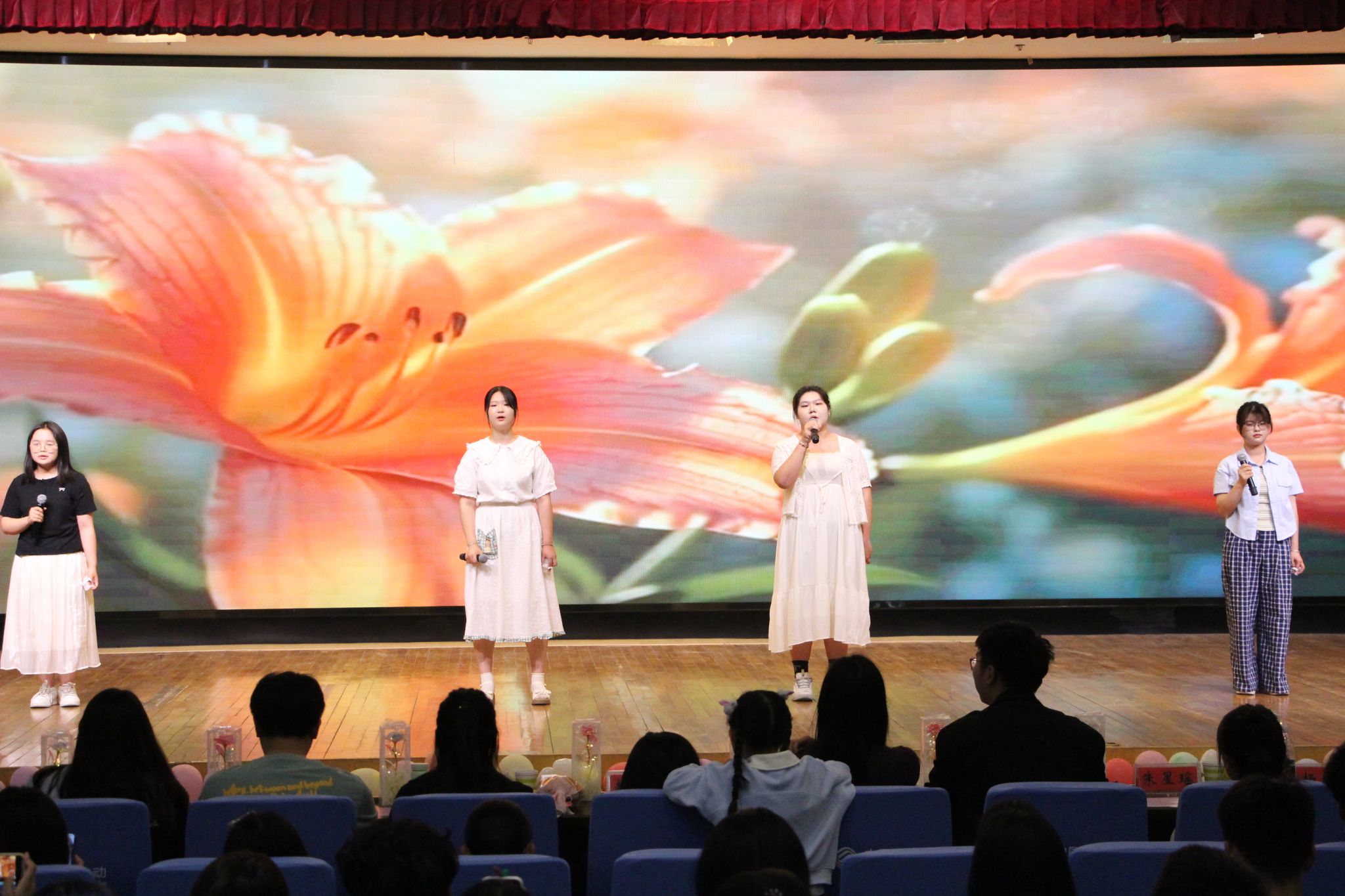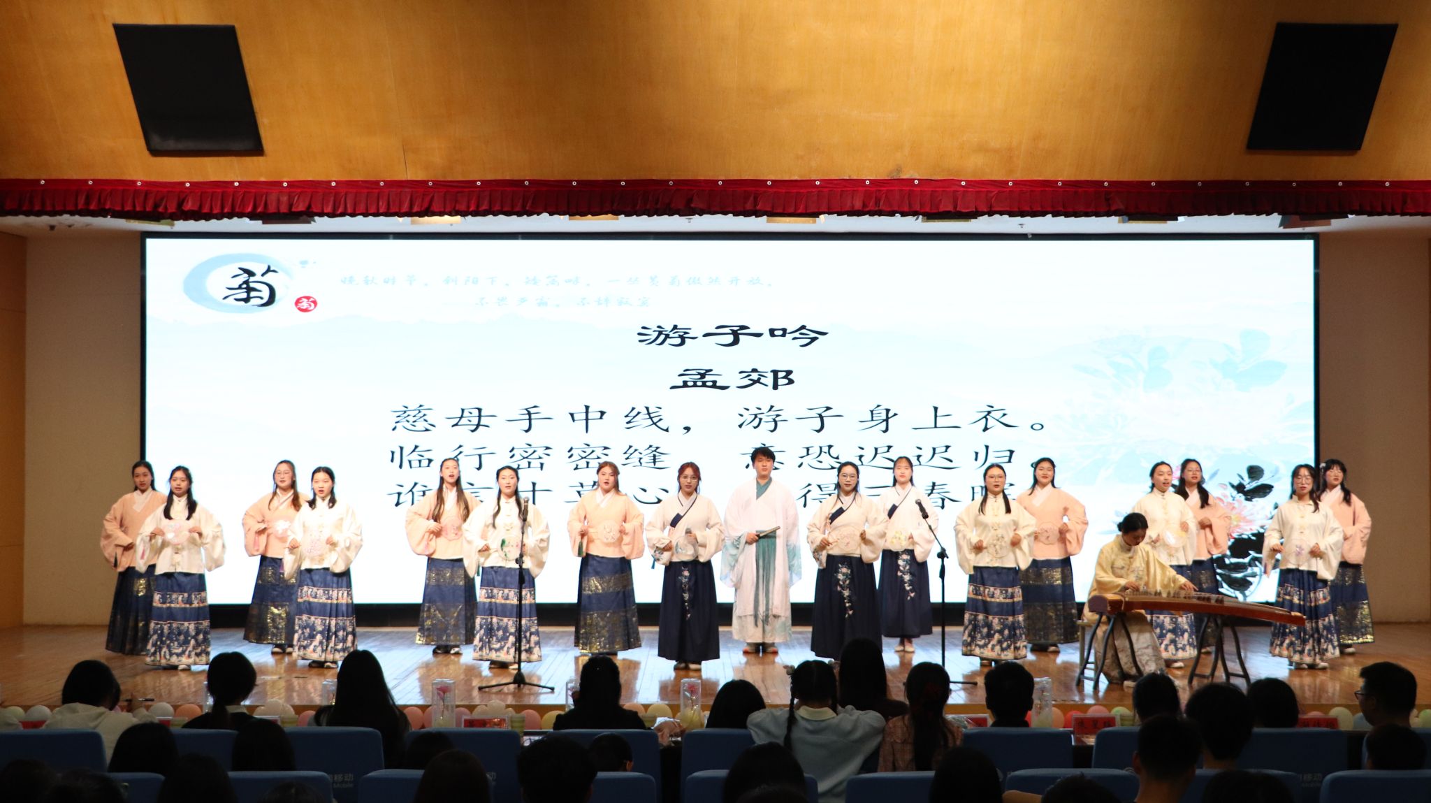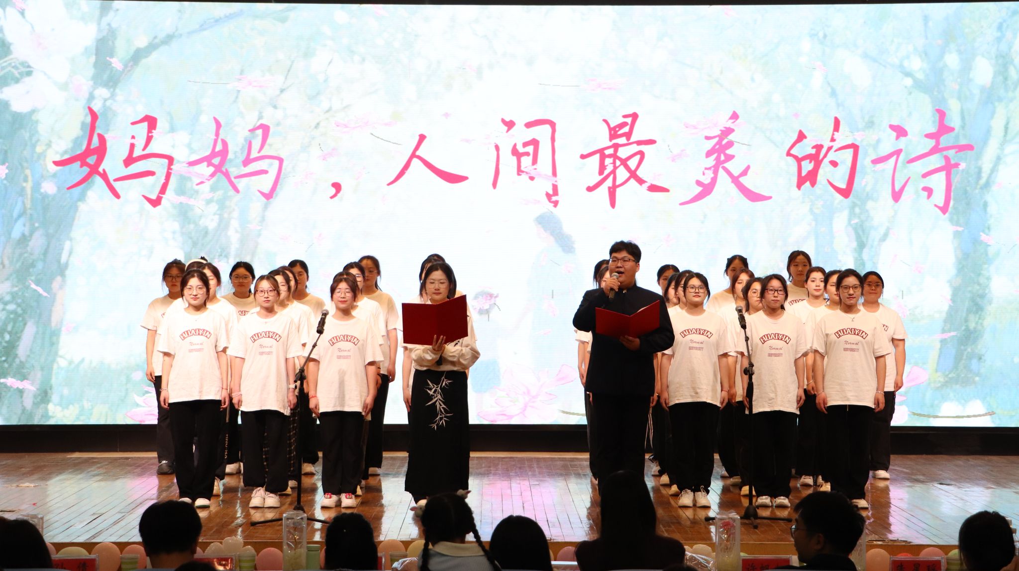 “慈母手中线,游子身上衣。”宛转悠扬的《游子吟》吟唱拉开了晚会序幕,一曲淳朴素淡的《慈乌夜啼》更让在场同学忆起母亲无私付出的身影;歌曲《你是人间四月天》用舒缓温柔的旋律触动了每个人的心弦;舞蹈《广寒谣》以优美灵动的舞姿引领观众步入唯美意境;李博、吉彤彤等同学深情朗诵原创诗歌《妈妈,人间最美的诗》,字字句句诠释着母爱的伟大;手语操《玫瑰少年》则以无声的语言传递着平等与爱的真谛。