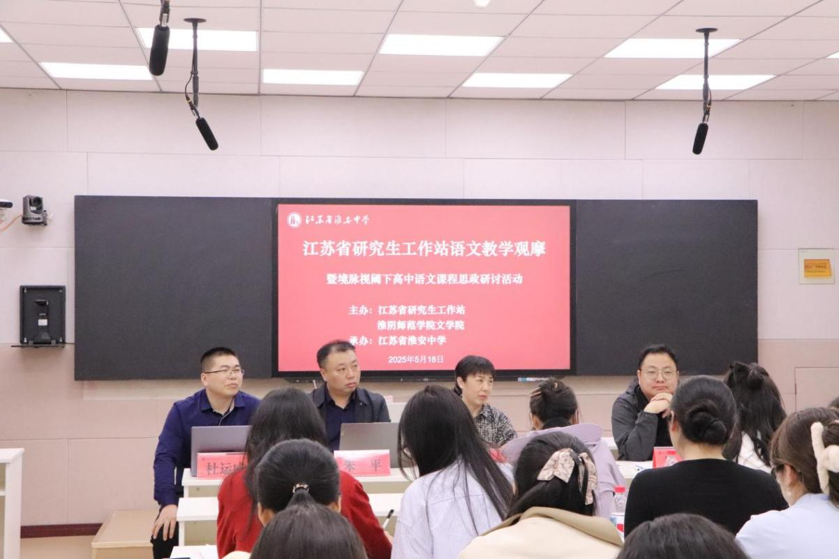 淮安中学研究生工作站负责人朱平围绕“境脉视阈下高中语文课程思政”主题,以“情境与脉络”的创新视角,结合高考改革趋势与“三全育人”理念,系统阐释了高中语文课程思政的实践路径,并通过具体教学课例展示了革命文学教学的深层价值。