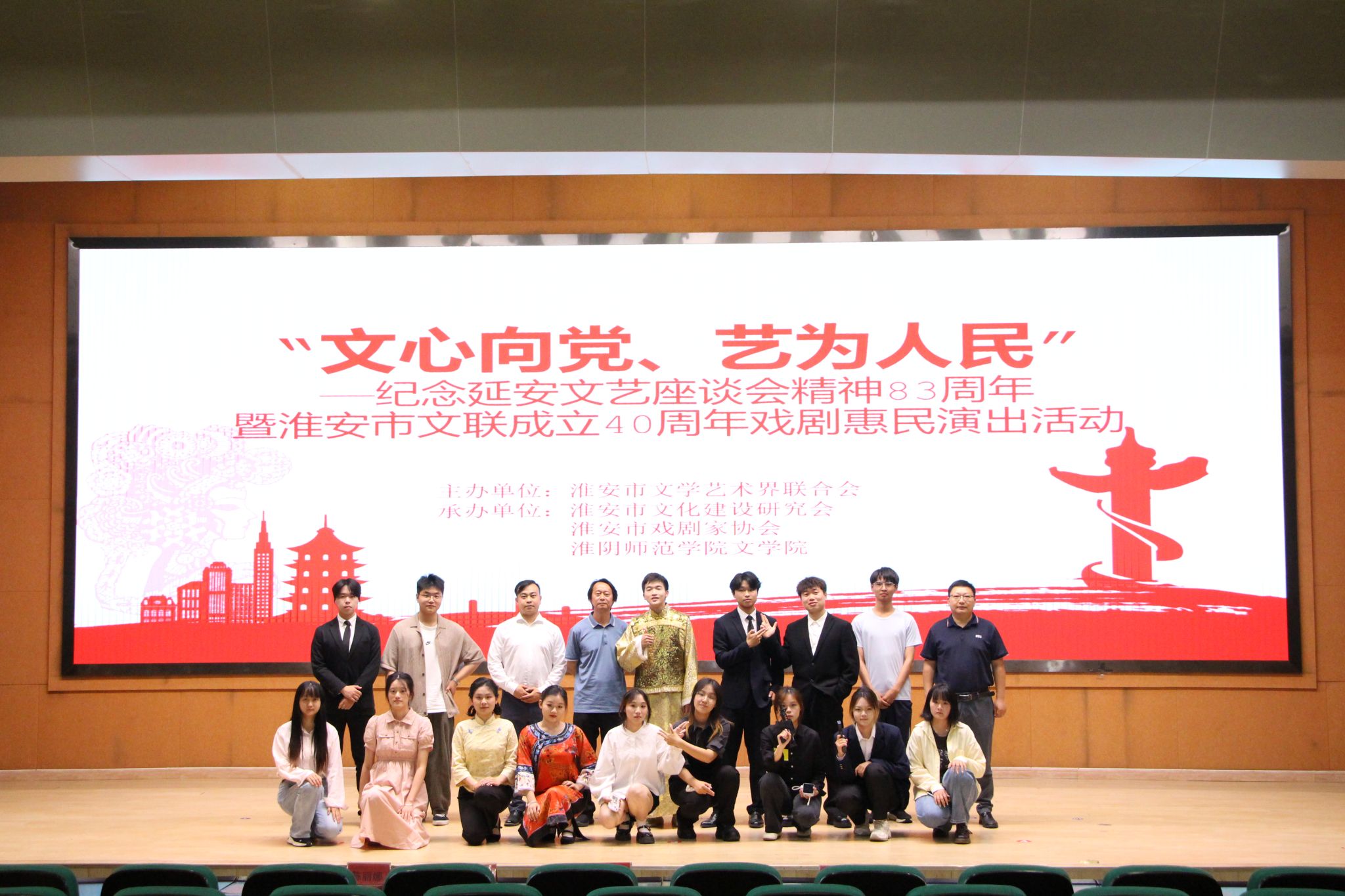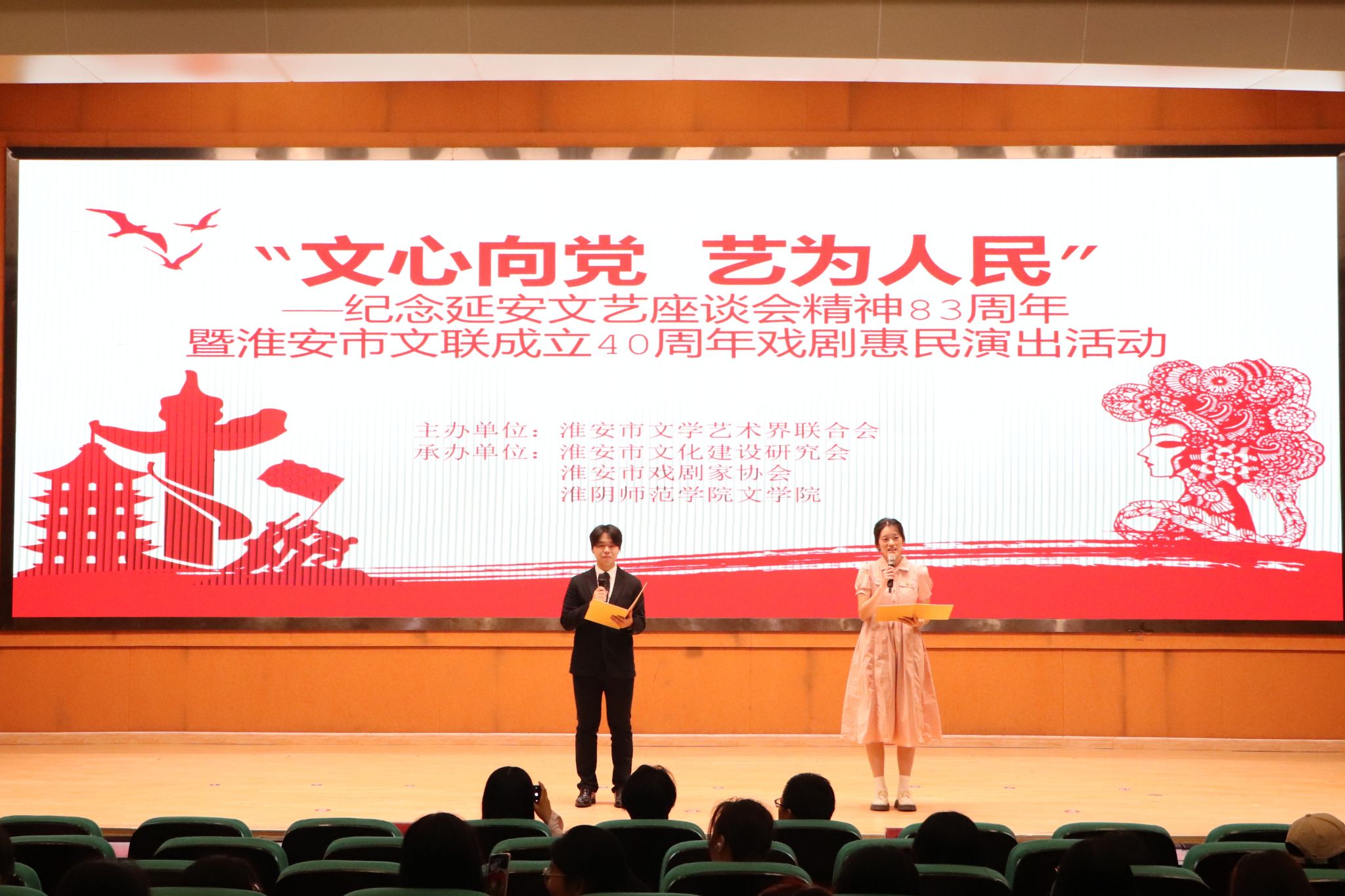 2025年5月22日晚7点,由淮安市文学艺术界联合会主办,淮安市文化建设研究会、淮安市戏剧家协会、必一运动联合承办,燃灯戏剧社协办的“心在延安·戏在淮安”——纪念延安文艺座谈会83周年戏曲惠民演出”活动在崇文楼阶106报告厅展开。