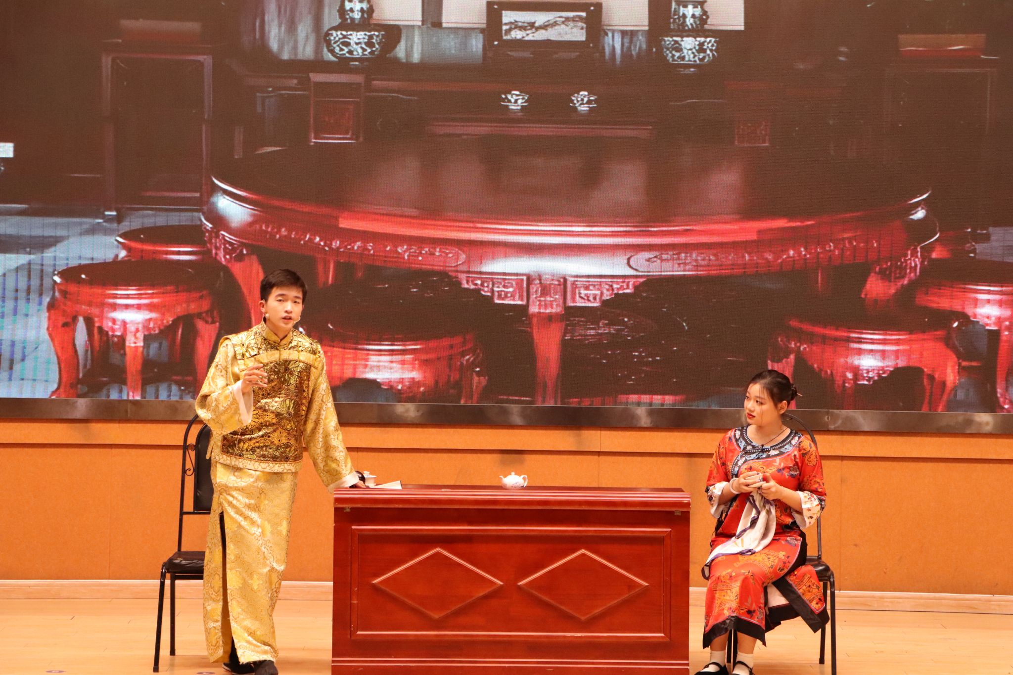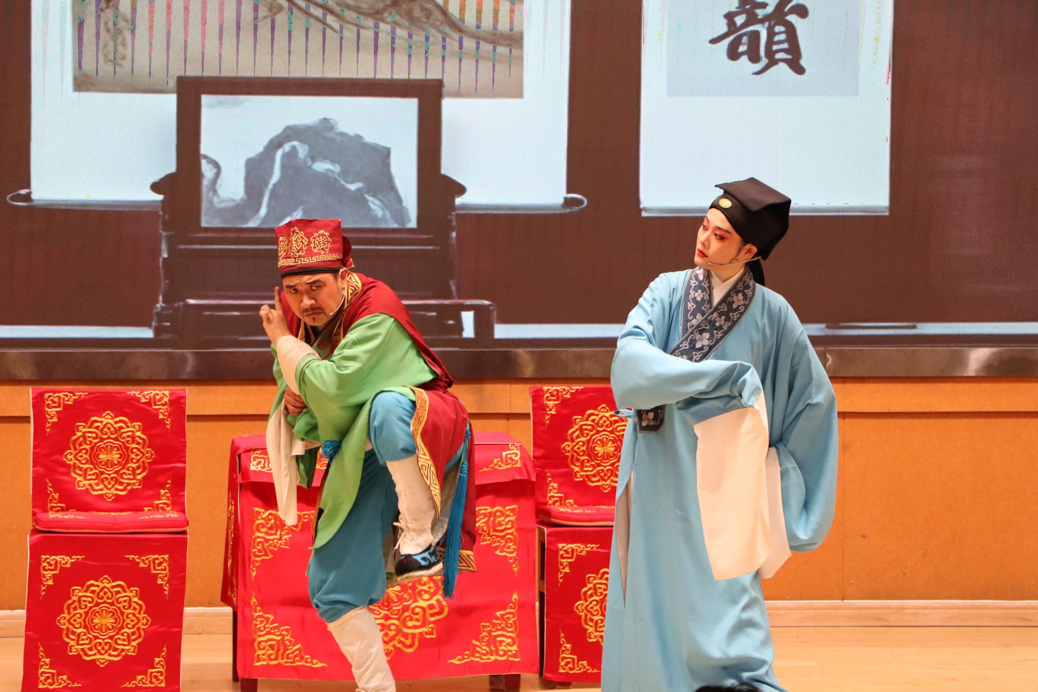 新传公司王媛媛、姜天然等同学的话剧《你好,打劫》片段为演出增添了幽默与思考,诙谐的表演引发观众笑声不断。最后,淮安市淮剧团一级演员陈丽娜老师压轴登场,以淮剧《吴承恩・焚稿》为演出画上完美句号,其深厚的表演功底令人叹服。