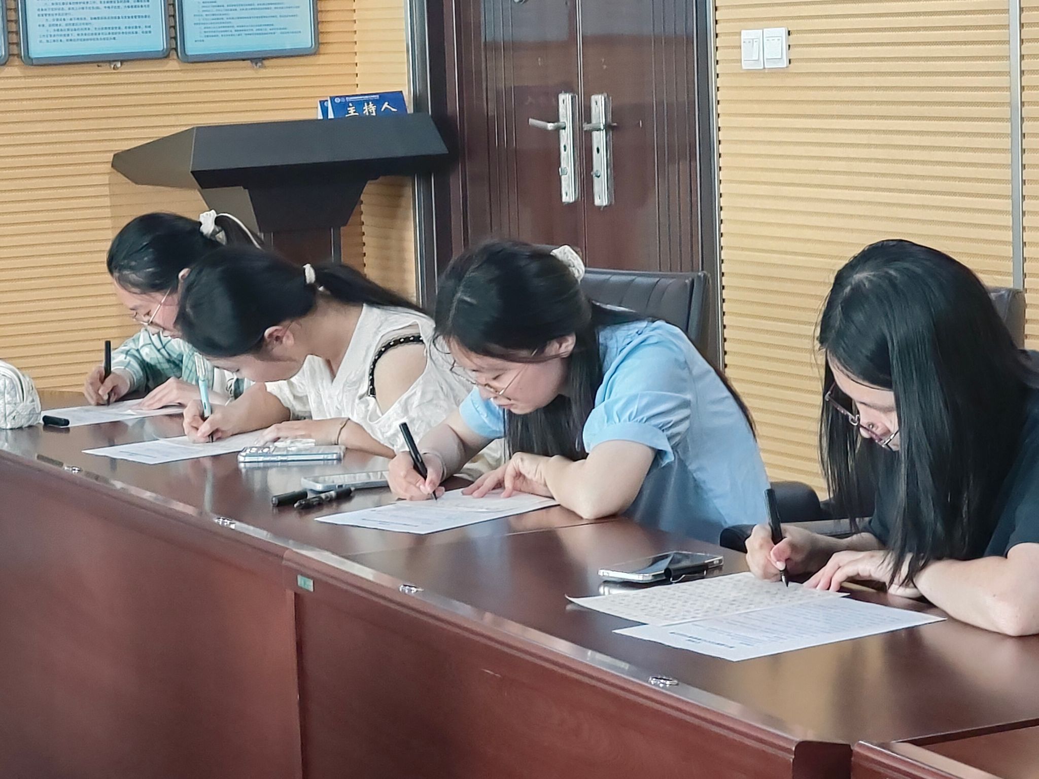 为进一步提高秘书学专业员工的书法技能水平,6月19日上午,必一运动文秘系在秘书实训室举办第六届“数智赋能、梦想远航”秘书文化周系列活动之书法比赛。文秘系全体员工参加比赛。
