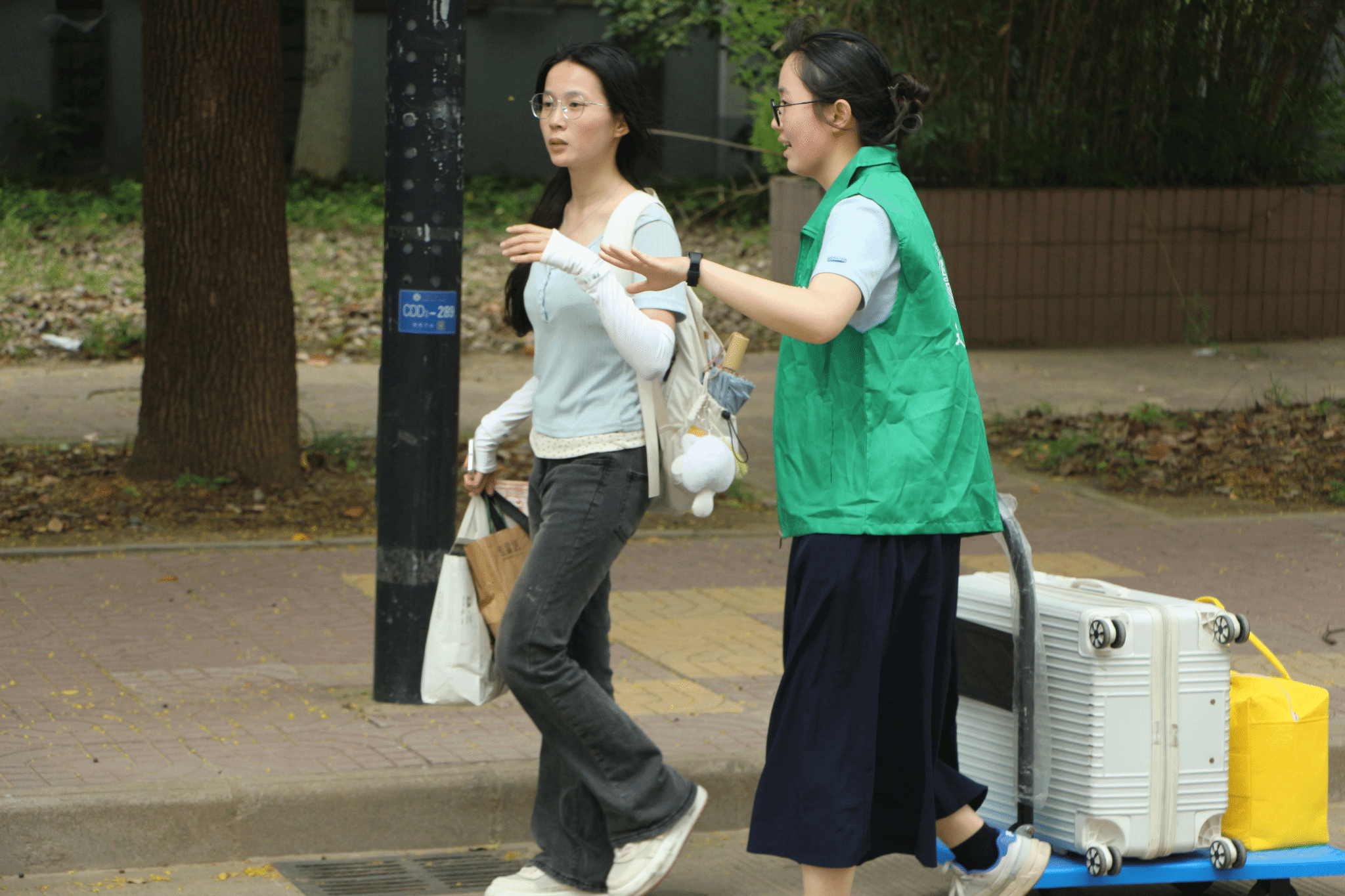 志愿引领,温暖启程。公司领导、师生志愿者与工作人员提前到岗,以高度的责任心和细致的服务投入迎新工作。现场设有清晰的功能指引和一站式服务台,涵盖签到注册、宿舍分配和校园介绍等全流程服务。志愿者们着装统一、精神饱满,不仅主动上前答疑解惑,还就课程选择、社团参与等话题与新生亲切交流,整个迎新过程流畅有序,温暖人心。