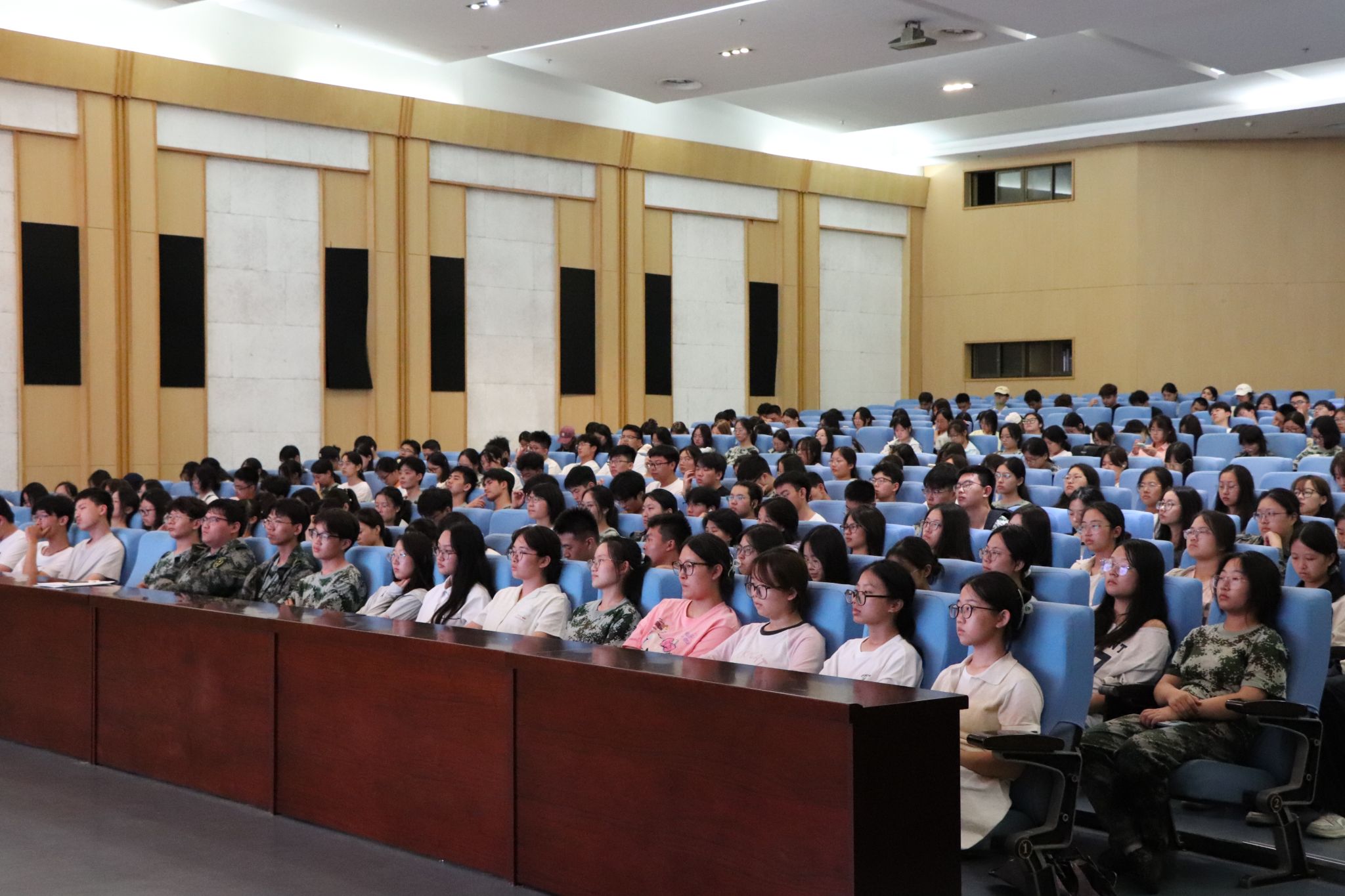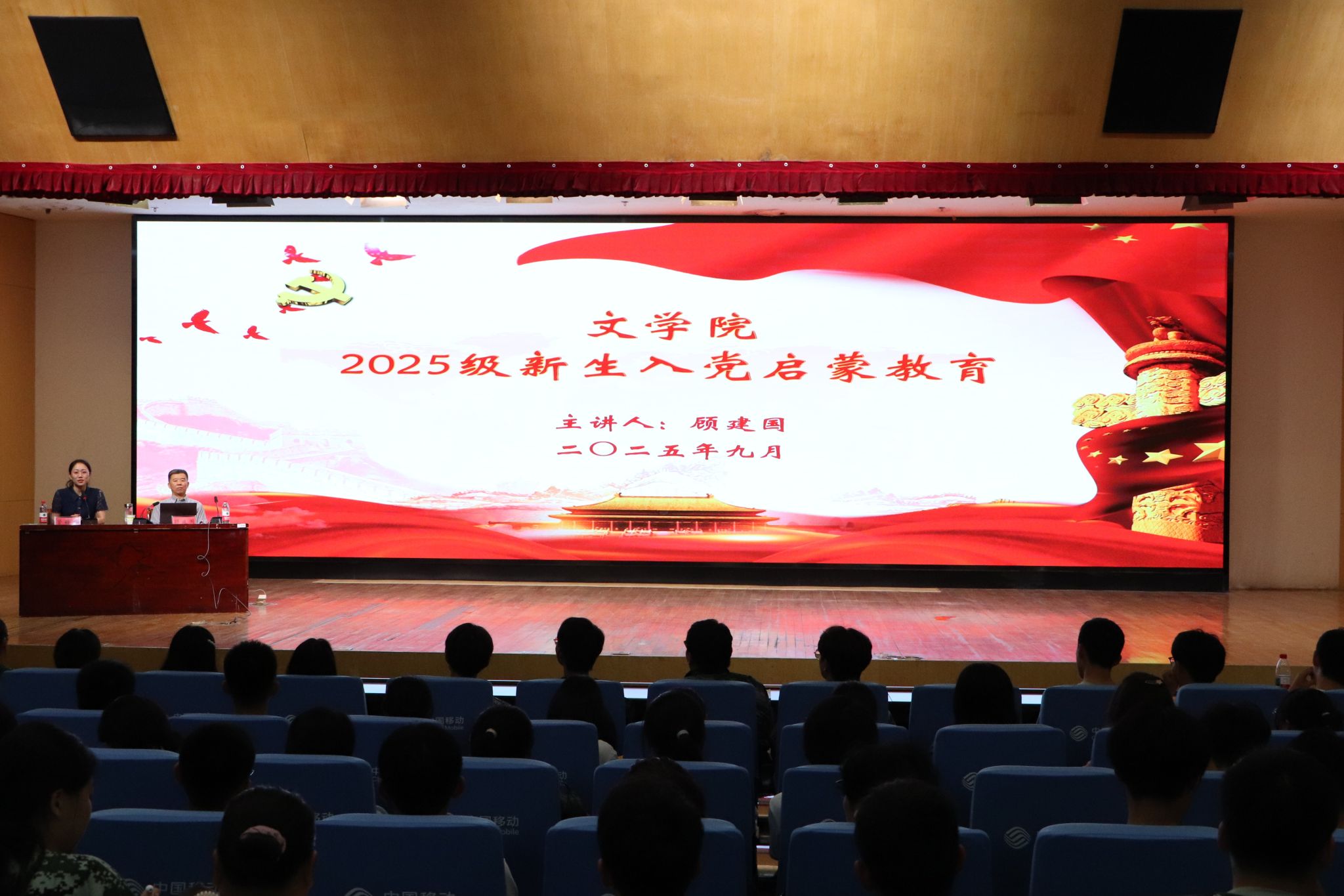 顾建国围绕“坚定理想信念,在党的指引下扬帆远航”主题,为2025级新生作专题授课。他指出,党和国家事业的发展需要青年一代的接续奋斗,青年知识分子的成长离不开党的培养和指引。以淮师员工入选纪念中国人民抗日战争暨世界反法西斯战争胜利80周年阅兵式为例,顾建国鼓励同学们以此为榜样,树立崇高理想,培养坚定信念,争取早日加入中国共产党。