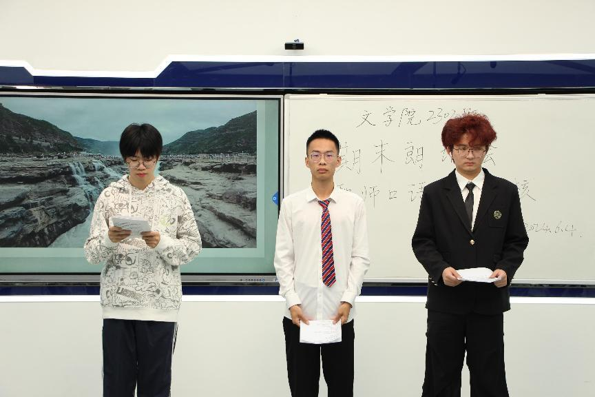 从古到今,从诗词到书信、散文,从祖国大爱到人生之感,同学们精心选择,充分准备,演绎古今圣贤的哲思,抒发家国情怀,情感饱满,淋漓尽致!同时,同学们也充分运用了老师上课讲的朗诵技巧,将理论巧妙地与实践结合,朗诵与PPT、配乐相得益彰。有的小组还采用故事串联式表演,使得整场朗诵会形式创新、内容丰富、气氛活跃。每组都有自己的亮点,在朗诵能力和技巧上都有明显的进步。同学们热情投入,沉浸在诗情画意中,意犹未尽。