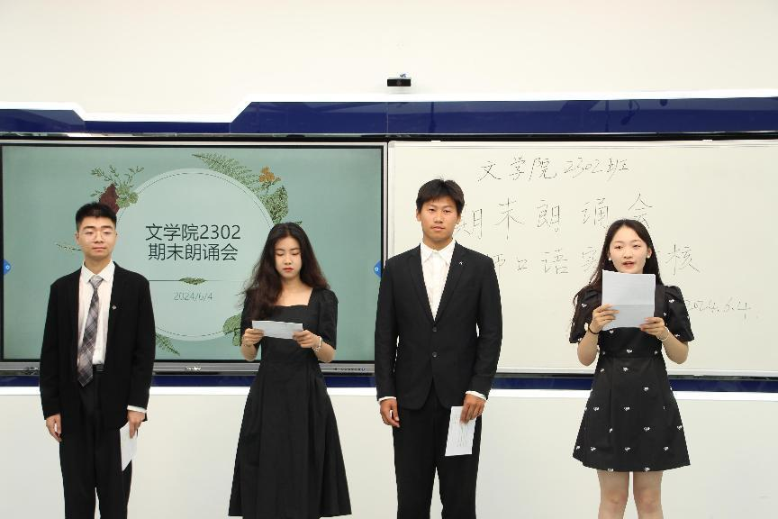 朗诵,是文字与声音的魅力结合,音文相协,带给听者灵魂深处的悸动。随着一学期《教师口语》课程接近尾声,2302班于6月4日在弘文楼2-308开展“期末朗诵会:教师口语实践考核”活动,以检验并进一步提高员工口语水平。张浩、叶一一、姜尧、薛莲主持本次活动,皇甫素飞老师及张博涵、万黎勤、吴心怡、顾燚娜、乔雨桐、张悠然、邵颖等七名同学担任评委。
