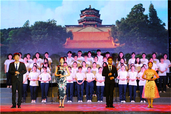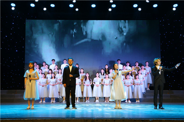 1801预科班为观众们带来了富有民族特色的歌舞表演《醉美民族风》。伴随着优美的旋律、曼妙的舞姿和富有异域风情的背景视频,师生们领略了祖国的大好河山,也深刻感受到了民族团结一家亲。诗会在少数民族同学与台下师生《我和我的祖国》的歌声中落下帷幕。