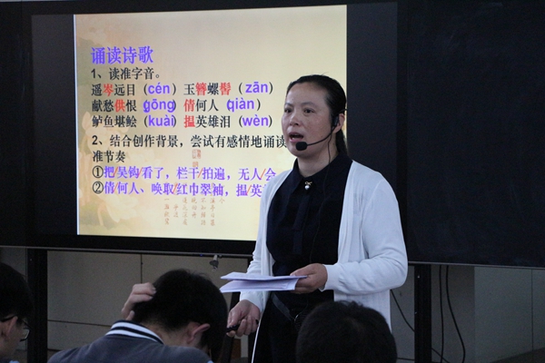 清江中学李干、刘春霞两位老依次进行课堂授课。李干以“古诗苑漫步”为主题带领同学们重温诗词经典。课堂围绕“声情并茂诵古诗”、“别出心裁品古诗”“分门别类辑古诗”三个环节,以小组诗歌诵读、书画欣赏、诗歌吟唱等丰富多彩的形式品读古诗词中的“爱情、酒、战争、月、离别、亲情、友情”,窥探多种多样的诗情。声情并茂的朗诵、栩栩如生的图画、优美动人的吟唱为大家带来了一场生动有趣的视听盛宴。