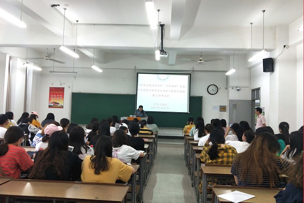 随后对外汉语系书记李迅老师向同学们介绍了小学期实践活动的具体安排,还对校内选拔赛的内容、规则以及奖项等进行了详细讲解。“中学西渐”选拔赛分为两个环节。第一环节是准备环节,参赛同学需要自行组队,每组三人,具体准备内容是说课、模拟试讲、回答中英文问题、主题演讲、理论知识竞赛、教案撰写、ppt制作等。第二环节是比赛环节,分别是理论考核,主题演讲,模拟说课、授课,答辩。选拔赛的目的是以赛代练,赛练结合,提高教学设计、说课与授课、多媒体课件制作、口语表达、英语听说等实践能力。