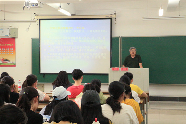 周欣展教授的讲座主题是“白话文作文教学理论”。他指出中小学教学中存在忽视问题的多样性、实用文体的写作教程落实不充分这两方面的问题,并细致分析了产生这些问题的理论原因。通过叶圣陶将文体分为艺术文与普通文的例子,他进一步分析了纯文学观与大文学观的区别,表示写作应重视应用文体,满足“供谋生应世之要需”。