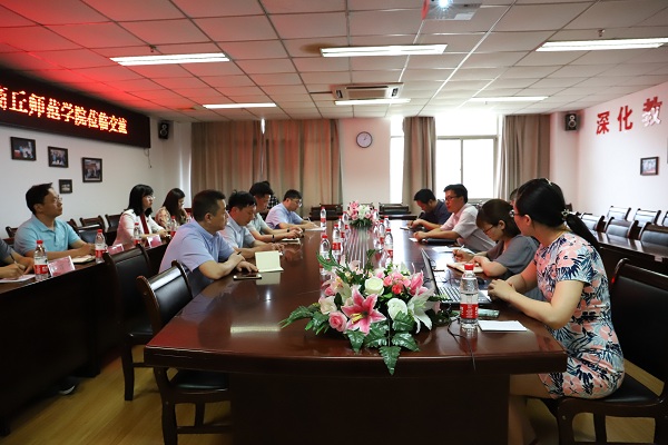 师范专业认证工作交流会于下午两点准时召开,孙辉主持会议。会议伊始,各校领导对于公司现状做出相关介绍。苏科大与商丘师院以学习的心态来公司学习成功经验,公司以交流学习的心态面对来访兄弟公司。后续交流在友好的气氛中展开。