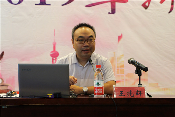 王兆轩以 “适应新变化,拥抱新生活”为主题,通过播放幽默的卡通对话视频向新生提出问题“为什么要考大学?”,围绕“前提是理解、接纳和尊重自己的个性”“重点是为自己的选择负责”和“方法是想办法决定心情,理智胜过情感”这三个方面进行由浅入深的讲解。王兆轩提出,在成长过程中要学会享受孤独,上大学是为了遇见更好的自己,为了生命更丰富。最后,他以一段寓意深刻的视频做总结,教育新生——不要想太多。