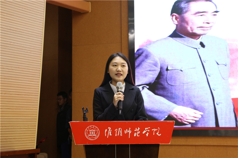起兮文学社带来的诗朗诵《穿越世纪的缅怀》铿锵有力又娓娓动听,同学们在荡气回肠的诵读声中,深深地体悟到周恩来精神的伟大内涵。最后,周昶屹发表讲话,再次赞扬了革命家的丰功伟绩和精神风范,提倡应加强青年社会主义核心价值观教育。