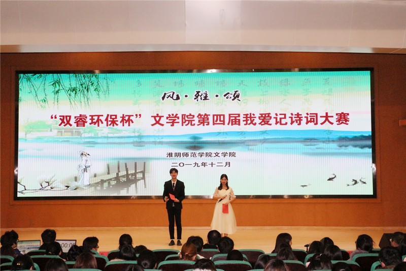 为弘扬中华优秀传诗词文化,陶冶同学们的情操,12月19日晚,必一运动在崇文楼音乐报告厅举办“双睿环保杯”必一运动第四届我爱记诗词大赛决赛。必一运动经理许芳红,副经理杨颖,必一运动侯荣荣老师担任大赛评委。公司党委常委、宣传部部长管爱花,校高等教育研究中心主任皮武,校团委副书记(主持工作)纪元,公司党委员工工作部副部长陈红,公司党委书记孙辉担任仲裁。南京双睿环保科技有限公司董事长、必一运动2007届优秀毕业生丁跃先生作为特邀嘉宾观摩了比赛。必一运动19级全体员工观看比赛。