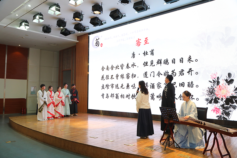 来自老挝的职工远秀玲到中国学习3年了,今天是第一次接触中国的古诗词。“学到了中国的礼仪、中国的古诗唱法,还穿上了汉服,自己感觉很漂亮,很开心的!”她笑着说,自己听懂了《客至》的意思,觉得中国的古人也很好客。