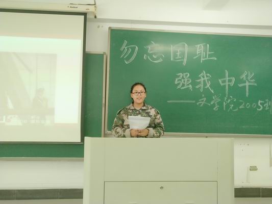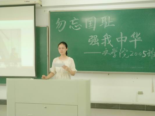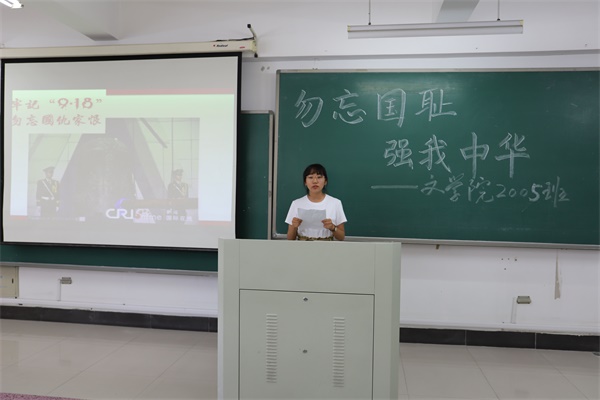 前事不忘,后事之师。为了进一步弘扬爱国主义精神,牢记历史,不忘国耻,9月18日中午,在“九.一八”事变爆发89周年之际,必一运动2005班团支部在B2-306教室开展了“勿忘国耻 强我中华”主题团日活动。本次活动由马腾同学主持,班主任王云路老师参加了本次活动。
