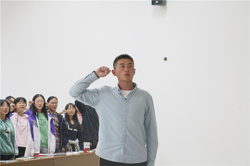 不忘初心,迎风而行。团课最后,全体同学在许帆扬的带领下,起立重温入团誓词。同学们饱含激情、铿锵有力宣誓,展现出淮师学子牢记使命、勇担责任的青春风采,发扬了青年员工坚守朴实、追求崇高的精神样貌。