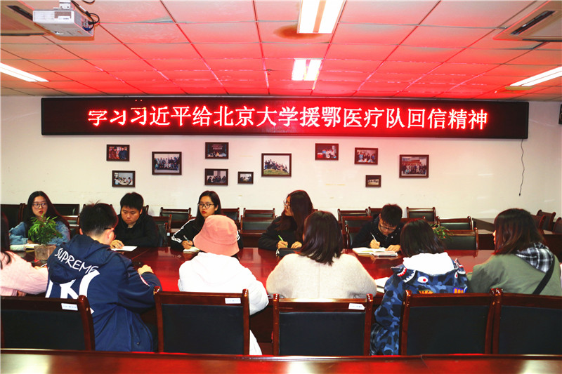 面对来势汹汹的疫情,北大援鄂医疗队以深切爱国情,勇敢赤子心筑起了保护群众的屏障,给予人们战胜疫情的信心。员工会执行主席潘陈程以习近平总书记给北京大学援鄂医疗队的回信精神为讲话主题,发挥榜样力量,加强思想引领。她指出,该精神以乐观、勇敢、无畏为核心,旨在加强青年理想意识。青年学子要在党与人民最需要的地方贡献青春力量,肩负起时代新青年的使命与担当。